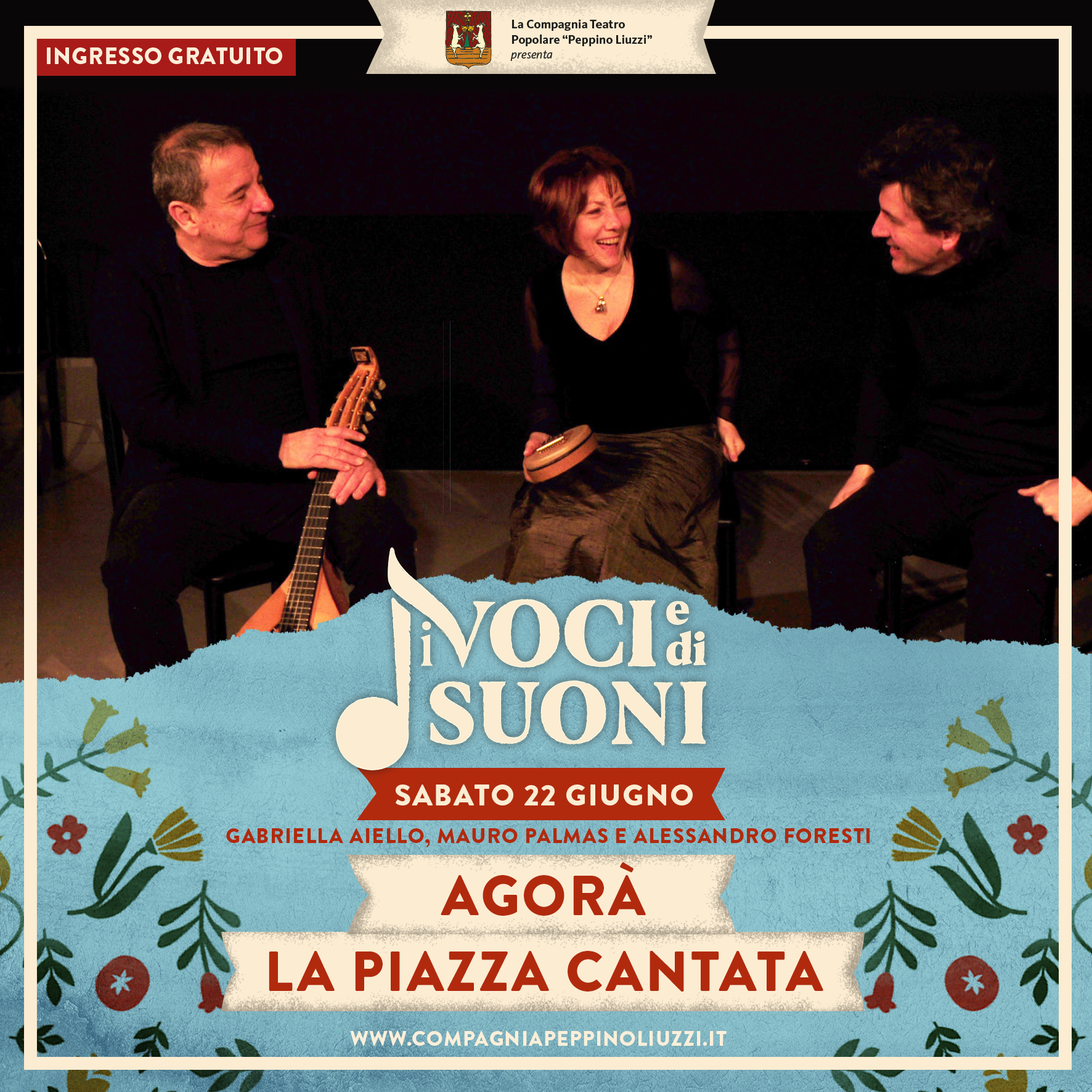 L'Agorà per le città greche era la piazza del mercato, il luogo delle assemblee, il punto di riunione di una comunità, dove il brusìo, le voci armoniose dei venditori ordivano melodie di vita quotidiana. Il concerto è dedicato alla piazza, alla strada, al luogo di incontro e scambio di culture. Un luogo di festa, di amori dichiarati e non sempre ricambiati, un luogo di scandalo e di protesta, in cui di voce in voce da secoli le storie si sono popolate di volti, di suoni, di antichi rituali, una tradizione che da allora si rinnova attraverso la rielaborazione di canti e antiche melodie di tradizione popolare ad opera di tre musicisti di eccellente esperienza e sensibilità.